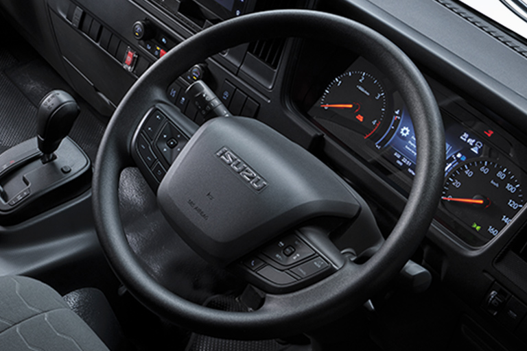 Tilts and telescopes at a touch, so you’ll readily arrive at a driving position that’s still comfortable at the end of a long shift. And that’s just one of Isuzu’s clever comforting touches.