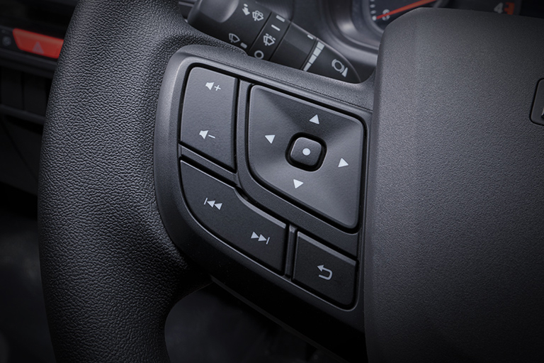 Starting with a smaller diameter for a more car like feel and control. Complete with easier handling and controls for the MID, safety systems, cruise control and AV unit, the new Tipper steering wheel is made for a smoother and more enjoyable drive.